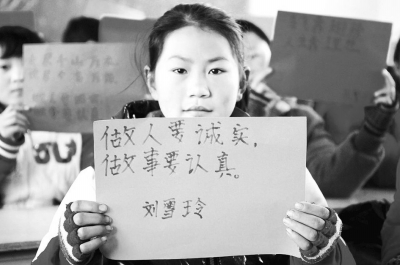 2月17日,山东省聊城市许营镇中心小学六年级一班学生刘雪玲展示自家的家风。当日是新学期第一天,许营镇中心小学在开学第一课上开展“晒家风”活动,小学生们将自己的家风、家训等写在纸上,互相交流、学习。 张振祥 摄