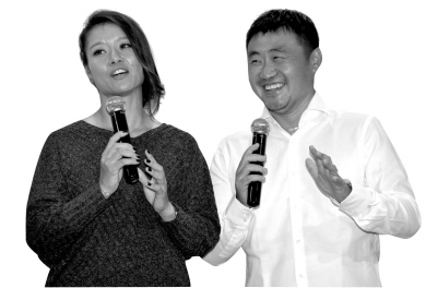 李娜在发布会现场调侃丈夫姜山。京华时报记者 王俭摄