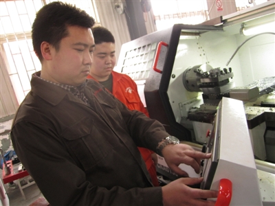 王展超今年刚过29岁,是河北满城县人。2004年高考后可上二本的他很想学一门技术,于是,就来到北京市工业技师学院数控系。入学当年,第一届全国数控大赛在本校举行。亲眼目睹大赛全程和选手们的作品后,他觉得数控技术很神奇。于是,他学习的兴趣更浓了,课堂上的机械基础、工艺基础、刀具与材料等课程和实操成了他的拿手好戏。