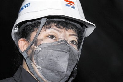白色的安全帽、深蓝色的工作服、戴上手套和口罩……唐颖每天都重复着这样看似简单的工作。“佩戴好护具,是确保安全生产的首要步骤。由于生产过程中粉尘大,每次下班后口罩上都会有一层厚厚的粉尘。”唐颖说。
