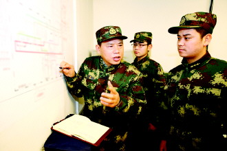 谭清泉深入连队为官兵解析导弹电路图。陈双维 摄