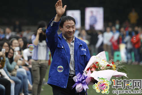 校园送水工李明开获得了重庆铁路中学颁发的特殊荣誉“星光奖”。 首席记者 李靖 摄