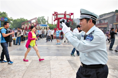 颜承林已经在城管岗位上工作了14年,作为一名老城管,他非常重视工作的细节。开工前,他召集当天上岗的队员开了个小会,要求队员们在“五一”期间要特别注意文明用语,避免让不了解情况的外地游客产生误会。