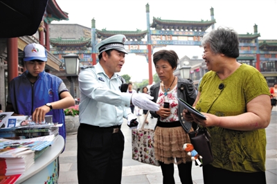 下午4点,一辆在前门大街南口“拉黑活儿”的三轮车被颜承林拦下。“颜队长,我没拉活,就是过来看看!”车主说。颜承林一天来回检查四五趟,跟这些“拉活儿”的人也都认识了,碰到了就好言相劝:“你为了生活,我为了工作,都不容易,相互理解,你赶紧回去吧。”(记者 饶沛 薛珺)