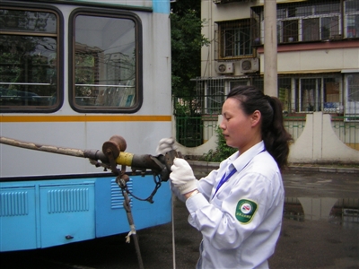 “无轨电车脱线后,驾驶员的第一反应往往是踩刹车。由于驾驶员的反应有快有慢,脱线时的车速有高有低,过急刹车会摔伤乘客,还可能造成集电头脱落或架空故障。”廖娟说:“如果8到10斤重的集电头从高空脱落飞行,砸伤人物的几率是很高的。”廖娟说。