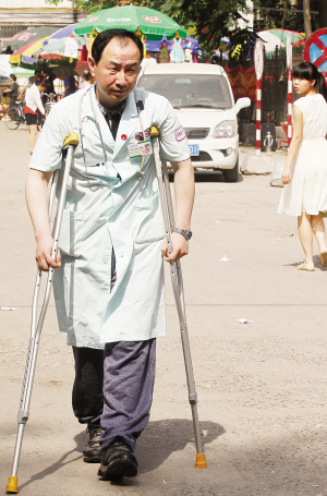 38岁的他,是建北街道办事处社区卫生服务中心的一名全科医生。在社区卫生服务中心,他一干就是17年。4年前,他被诊断出一种罕见的癌症——霍奇金淋巴瘤。在与死神经历了一番惊心动魄的搏斗后,他重返工作岗位,被辖区居民誉为“双拐上的片医”。