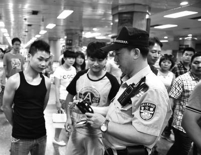 张志刚正在核查乘客信息。(记者 赵思衡摄)