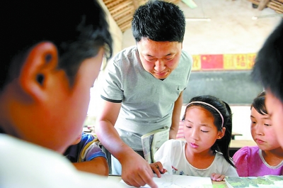 杨承给孩子们辅导功课。资料照片