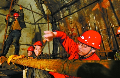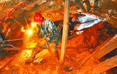 工人们在6号斜井处理难度罕见的涌水涌沙地质灾害。