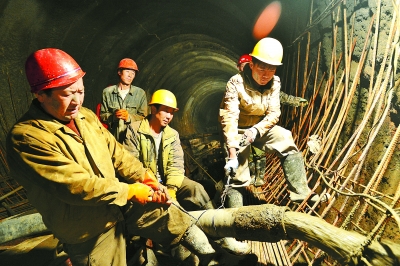 去年初,承担7号隧洞1号、2号竖井冻结施工的辽宁东煤、沈阳极地等首批前期工作人员在海拔2360米的山区安营扎寨。数百名施工人员昼夜施工,数十台钻机连续作业,20多台冷冻机昼夜轰鸣,各施工现场,机声轰鸣,车水马龙。
