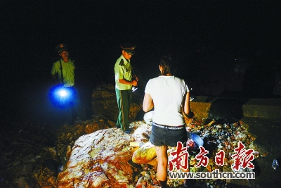 总一些不遵守规定的游客在海滩上烧烤,所以即便是深夜也要到海边检查。王昌辉 摄