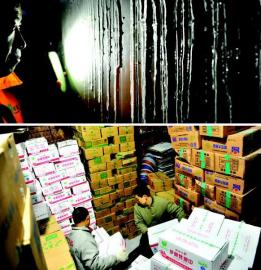 昨日,在西安方欣冷库8号库里,焦峰和工友身着棉袄棉裤在冷库内搬运货物。冷库里常年保持在-20℃左右,此时室外气温逼近35℃,温差达到55℃。对于方欣冷冻品批发市场里的搬运工来说,他们每天都得在这种温差超过50℃的“极致”环境中不断“切换”。(记者 刘强摄)