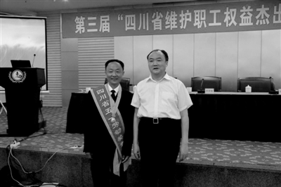 侯家齐为维护农民工合法权益的大智大勇,赢得了广大农民工的信赖,也得到上级领导的肯定。今年7月,侯家齐获得第三届“四川省维护职工权益杰出律师”荣誉称号。(记者 向晓文 文/图)