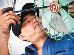 王师傅每天要在2个小时之内,检查车内全部92台风扇的运转情况。夏季高温,风扇超负荷运转,常常导致风扇内的碳刷磨损,这时他就要站在座位上,把风扇内部打开,小心更换新碳刷,防止风扇出现新的线路故障。
