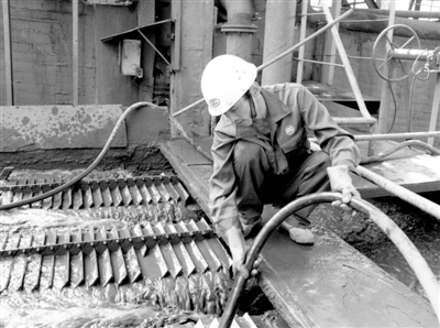 由于来矿量的波动以及矿浆中不可避免的杂物,管道堵塞也是常有的事。今年6月,将原矿输送到浮选的300多米管道由于矿浆浓度过大被堵,直接影响到下道工序的生产。闻讯而来的杨建平带着组里的几名职工,每隔20多米就卸开管道上方的溢流阀天窗进行疏通,就这么连着干了2天,硬是把管道清理得干干净净。