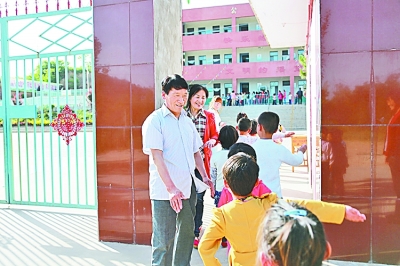 王卫民迎接孩子们到校。 资料图片