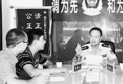 这是一起交通事故赔偿调解案。四川广元市朝天区地处进出四川的交通要道,交通事故频发,事故调解工作繁重。2010年,警局老党员文同武自告奋勇,当起了交警大队调解员。现在,老文每年处理200余起交通事故赔偿调解,经验老到的他,对这次调解已成竹在胸。