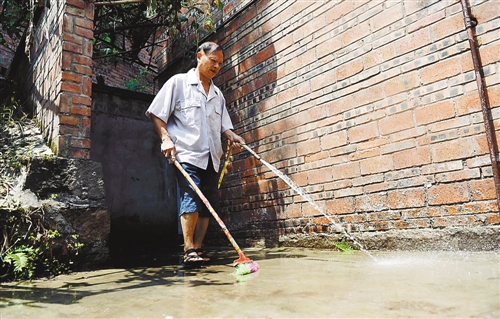 大渡口建胜镇公羽公司,“所长”刘长炳正在清扫厕所。首席记者 崔力 摄