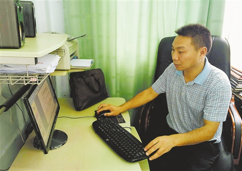 8月30日,巫溪县古路初级中学校长办公室,薛涌正在为新学期第一次教职工大会做准备。 记者 王濛昀 摄