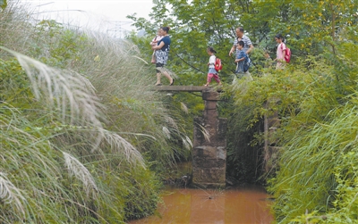 陈红权、明红艳夫妻护送孩子们放学回家。