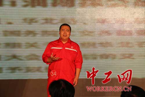 来自胜利油田胜利采油厂胜采一矿的一线工人王韶华在决赛中演讲。中工网记者 郑一强 摄