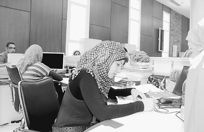 中埃苏伊士经贸合作区为埃及带来了大量就业岗位。图为埃及员工在办公。 资料图片