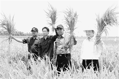 隆平高科和当地国有种子公司合作后的第一次大丰收。左二为李昊同。资料图片