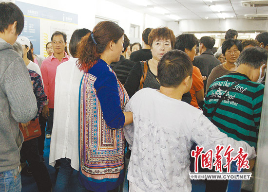 9月25日,首都医科大学宣武医院的大厅里,患者拥挤着等待上楼就诊。本报记者 杨姣摄