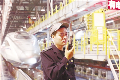 10月11日18时40分,从西安、北京、上海等线返回的动车组列车陆续驶进郑州铁路局郑州动车段,等待“体检”。一看、二摸、三敲、四掂,这是郑州铁路局郑州动车段质检员罗烽光每天必不可少的工作内容。