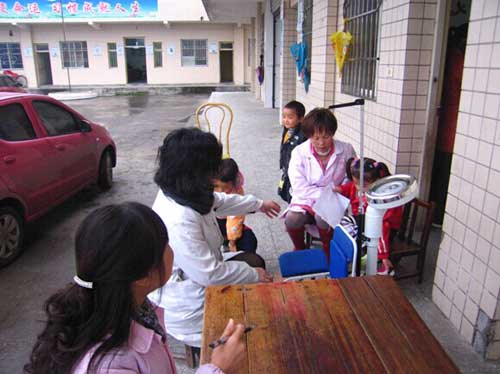 邓小容同志在屏锦镇万年村幼儿班为儿童体检