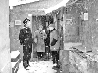2008年,王马林冒雪看望住在社区平房里的低保户。