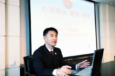 见到靳跃的时候,他刚从基层院风尘仆仆地赶回办公室。得知我们的来意后,忙碌中不失幽默的他用一句“心理测试人员不是在办案,就是在往返办案的路上”拉开了话匣子。