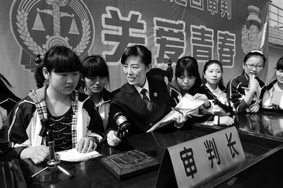 图为最美法官何伟丽向青少年讲解法庭知识。张 琦 摄