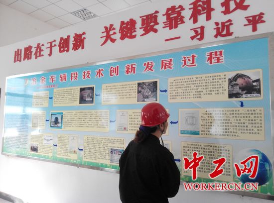 走进武钢股份公司运输部冶金车辆段(以下简称冶金段)“320严峰创新工作站”,“出路在于创新,关键要靠科技”几个大字映入眼帘,格外醒目耀眼。冶金段技术创新发展史、技师动态管理、目标承诺公示及荣誉展示等等内容,让人感受到一股浓厚的创新之风扑面而来……