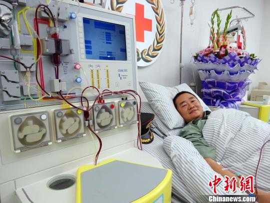 中新网郑州12月3日电 (记者 周小云))12月3日,在河南省肿瘤医院造血干细胞采集室里,正在进行一场具有里程碑的骨髓采集。27岁的军医周继明成为河南第456例、全国第4627例造血干细胞捐献者,他也是河南首位捐献造血干细胞的军医。