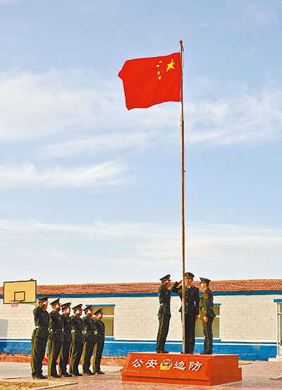 民警升国旗。