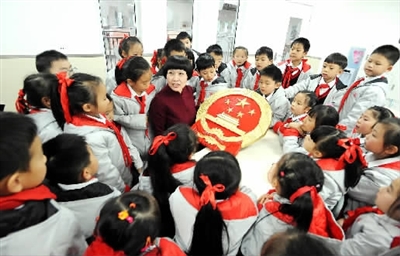 12月4日,首个国家宪法日,刘希娅给孩子们讲法制课。杨波摄
