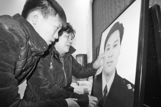 图① 张作田的妻儿在遗照前无数次念叨“好丈夫、好爸爸,我们想你”。