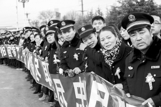 图② 来自赣榆的民警与社会各界群众为张作田送行。