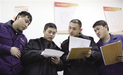 记者走进日检班班组办公室,看见几名身着深蓝色工作服的检修工人紧张忙碌着,有的人在填写日检单表、工作卡,有的在整理检查各种仪器、工具。