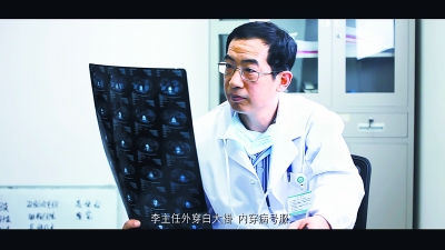 ▶李宏的白大褂里,可以依稀看到还穿着病号服。