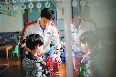 张晓龙对孩子的喜爱,对工作的热爱,让他得到“幸福回报”,在幼儿园里,不仅班里的孩子喜欢张晓龙,就连隔壁班的小朋友看到他经过,也会从教室里伸出脑袋,跟这位“大哥哥”打招呼,主动告诉他自己刚刚获得的成绩,而家长们也对他的辛苦付出颇为感激……