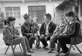 每成功调解一起纠纷,都要进行一次回访。在李现作(左二)家,侯先亮所长正与他促膝交谈。
