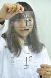 经过两次筛选,证件已经基本合格,并送往制证。制证前还得经过一道预备程序—膜打印,信息上传到电脑后分批打印到一张膜上,与国家提供的标准膜版相对比,“由于是批量打印,所以必须通过膜打印的方式事先检查打印机的油墨深浅、图像清晰度。”随后,经过预定位、层压、电写入等12道复杂的程序,身份证才算制作出来。