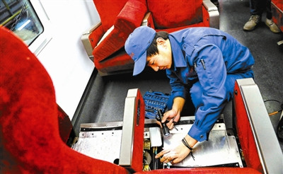 杨德文告诉北京青年报记者,“回家”的动车组列车首先要经过自动化洗车库进行外皮清洁,再由接车人员初步“体检”后,驶入动车所检修库进行一级、二级和高级检修作业,一级检修作业包括对车顶、车下以及上部服务设施的检修,二级检修主要采用超声波探伤技术进行轮对的空心轴、轮辋、轮辐的探伤作业。