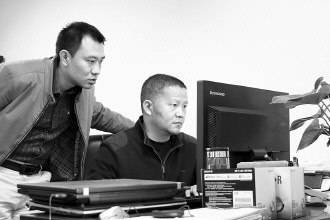 与同事在分析视频资料寻找犯罪嫌疑人线索。
