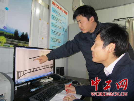 白天,他们登乘动车拍摄接触网设备照片;晚上,他们神情专注地在办公室里对全部照片逐一分析、查找设备缺陷。
