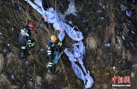 2月22至23日,四川山地应急救援队的“蜘蛛侠”们来到峨眉山金顶,深入舍身崖下200多米处捡拾游客丢弃的塑料瓶和塑料袋等白色垃圾,通过捡拾行动提醒广大游客不要随便乱扔垃圾,爱护和保护景区环境,做文明游客。图为“蜘蛛侠"王麒与队友下崖捡拾游客丢弃的垃圾。刘忠俊 摄