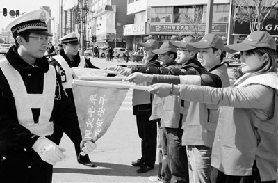 ■沧县职工爱心志愿服务队志愿者在交警指导下进行岗前培训