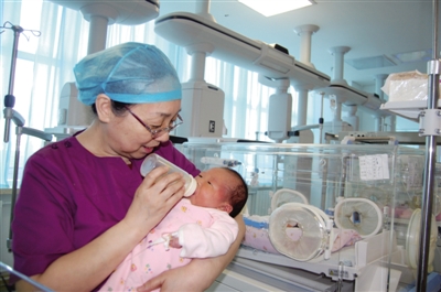 在给早产儿喂奶。 本报记者 达古拉 摄
